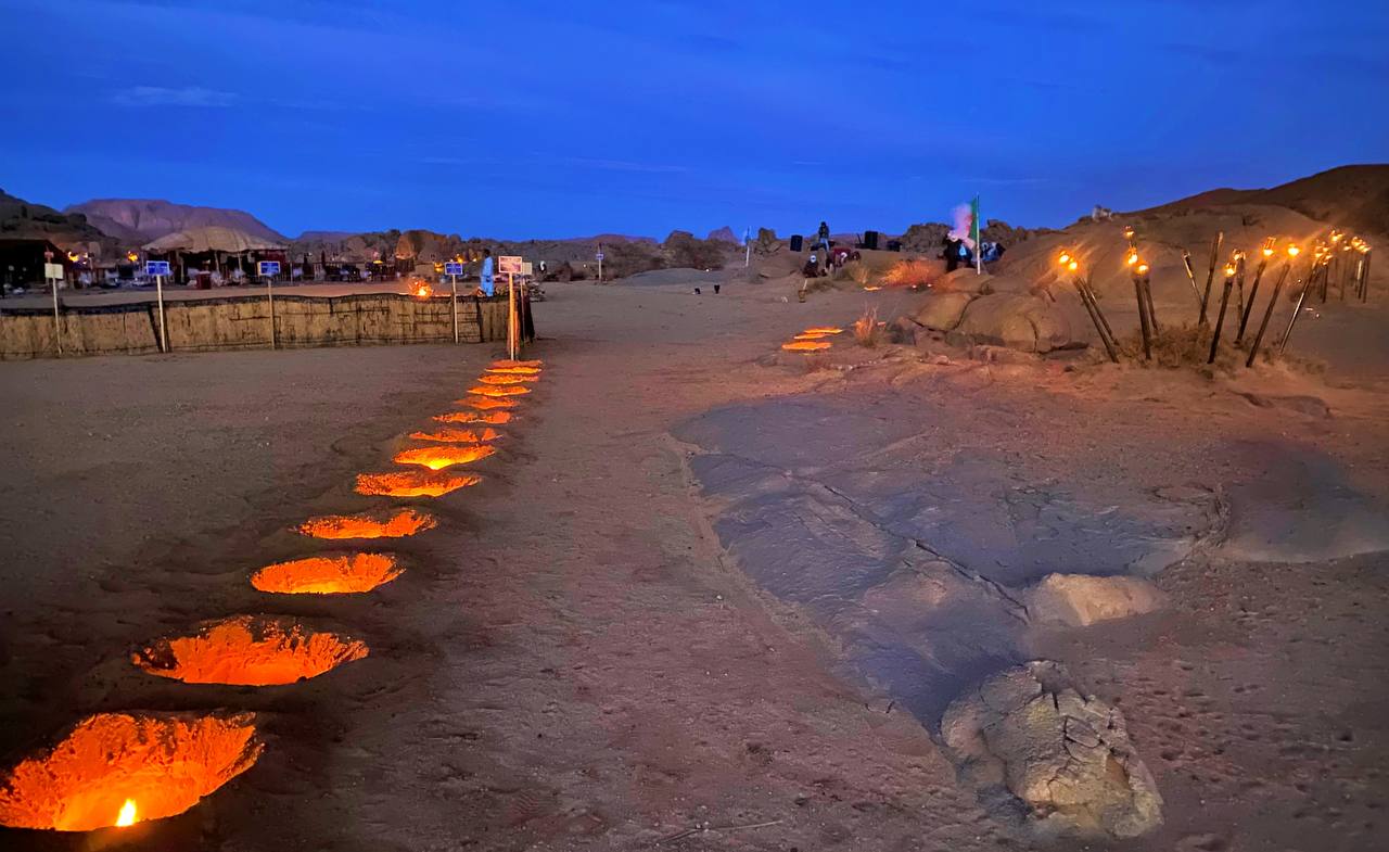 Profitez d’une brève pause et installez-vous à table pour savourer un délicieux dîner traditionnel accompagné d’une animation folklorique captivante. Dansez, heureux et vivants, aux rythmes traditionnel et envoûtants, et plongez dans l’essence même de la culture saharienne. Sous vos yeux défileront des performances artistiques authentiques qui sauront marquer à tout jamais vos coeurs et vos esprits par les souvenirs de nuits enchantées du désert.